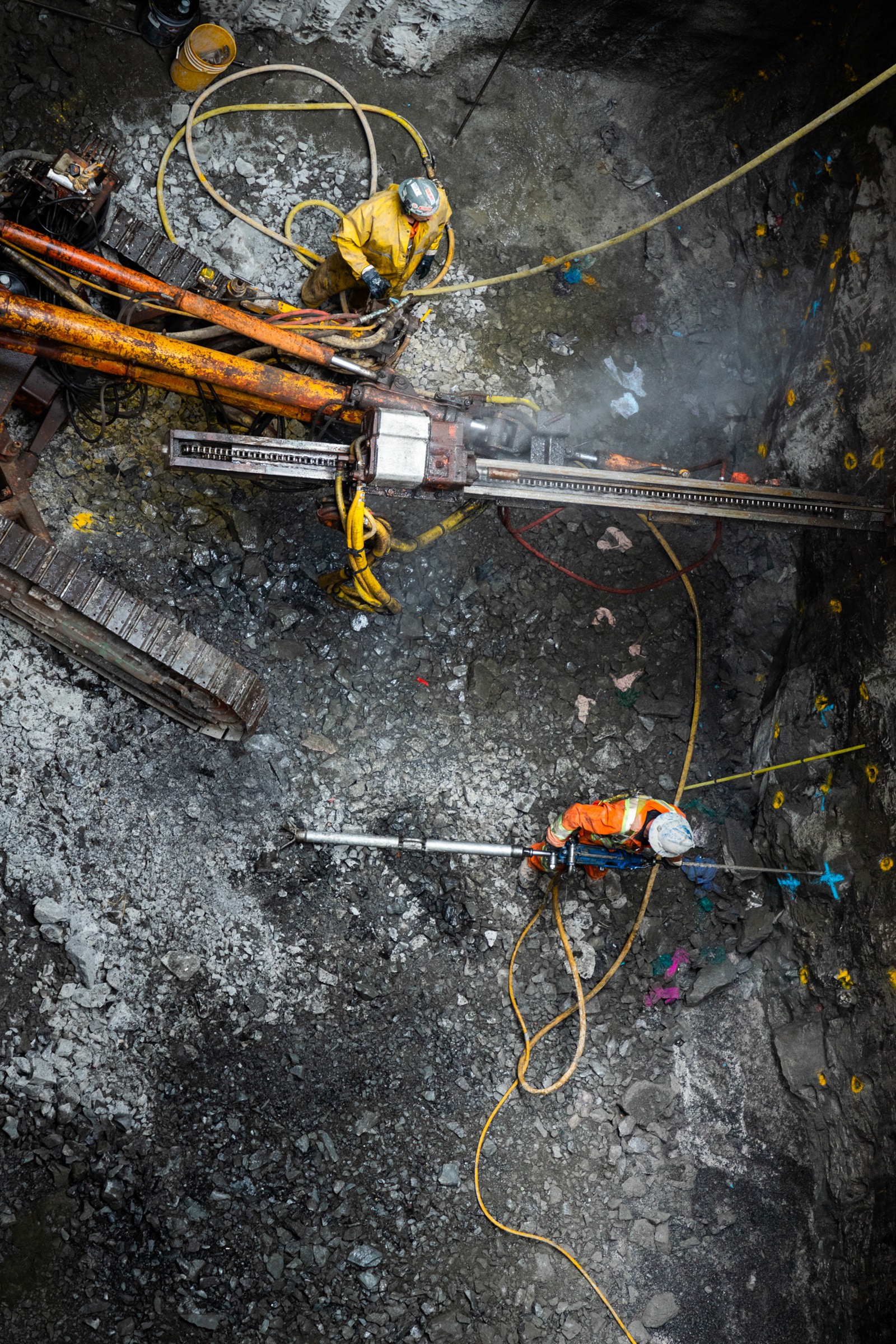 Reportage sur le métier de foreur-dynamiteur lors de la construction d'un tunnel pour la STM